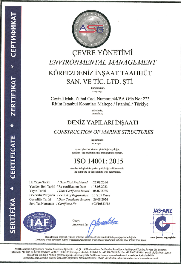 Deniz inşaat sektörünün farklı disiplinlerinde faaliyet gösteren Körfezdeniz İnşaat; kalite, iş güvenliği ve çevresel sorumluluk ilkelerini tüm projelerinin merkezine alır.