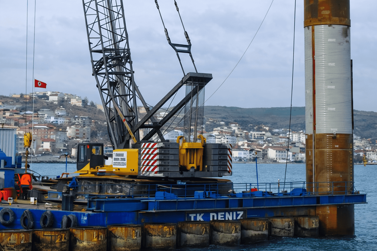 *Çapı 2200 mm ve kalınlığı 20 mm olan çelik boru kazıkların çakılması