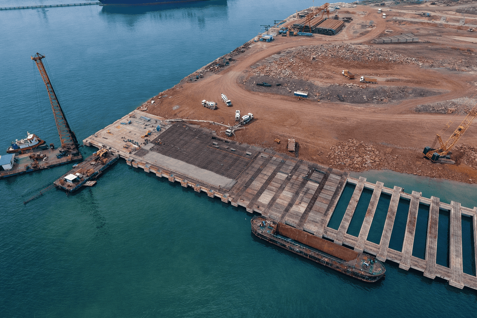 *450 m x 37 m ölçülerinde rıhtım inşaası (Prekast döşeme ve kirişlerle birlikte),