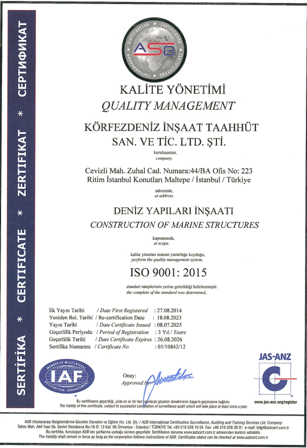 Operating across various disciplines of the marine construction sector, Korfezdeniz Construction places quality, occupational safety and environmental responsibility at the center of all its projects.